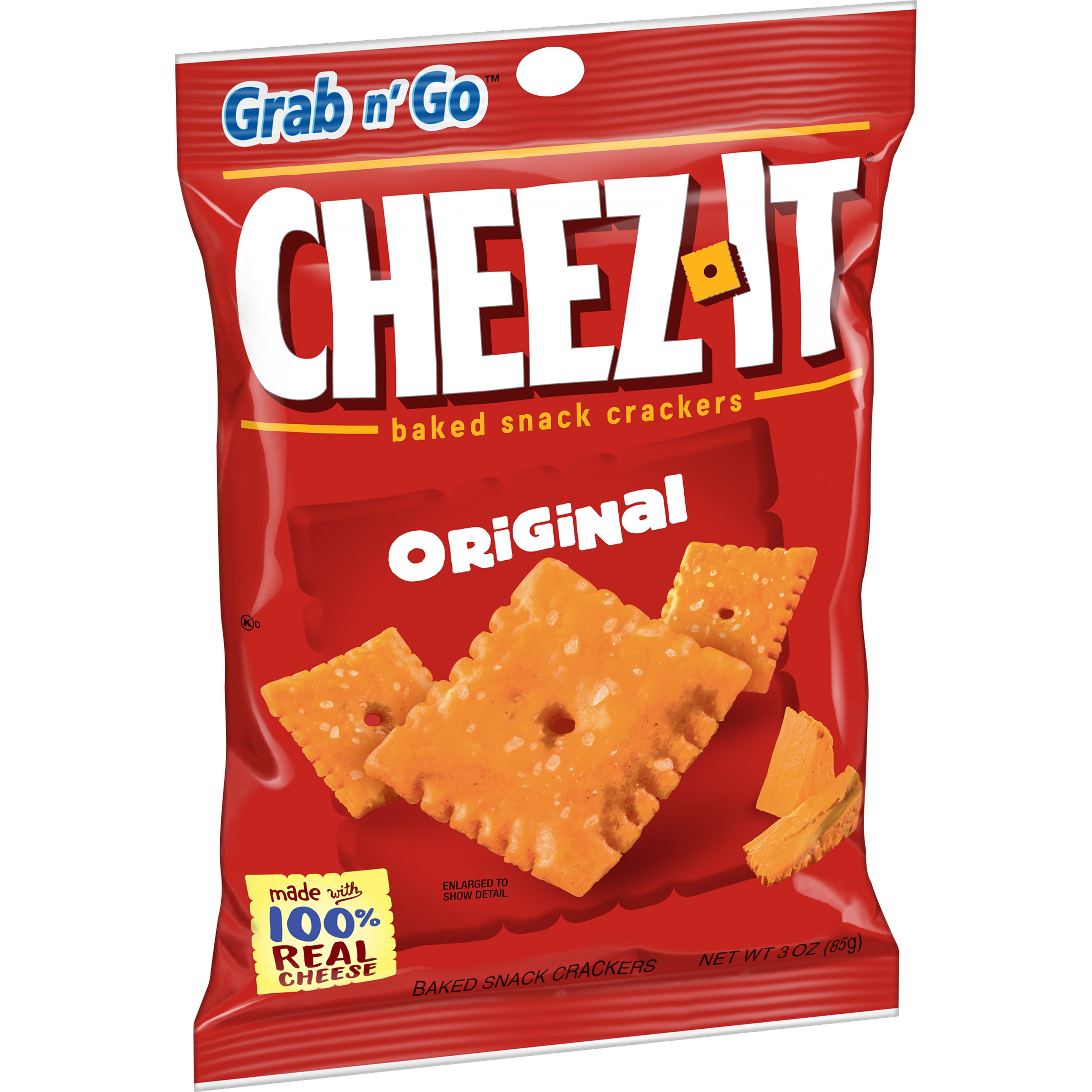 Cheez-Its are a light, crunchy, salty snack made with 100% real cheese. With their iconic shape and mouth-watering salty taste, Cheez-Its have been a favorite amongst snack lovers since their invention in 1921. Every Cheez-It is packed with the unparalleled flavor of real cheese aged to perfection. Measuring about 1 in. x 1 in. in size, Cheez-It crackers are the perfect bite-sized snack for school lunches, parties, picnics, and late-night snacks. CVS Pharmacy® carries Cheez-It crackers to give you the bold cheesy flavor you need when at home or on the go. As they are available in large boxes, portable single-serve cups, Grab n' Go pouches, and resealable zipper bags, you can choose the perfect package for any occasion and are an easy addition to your grocery list! These baked crackers are made from natural skim-milk cheese, so you can enjoy their bold flavor with confidence.